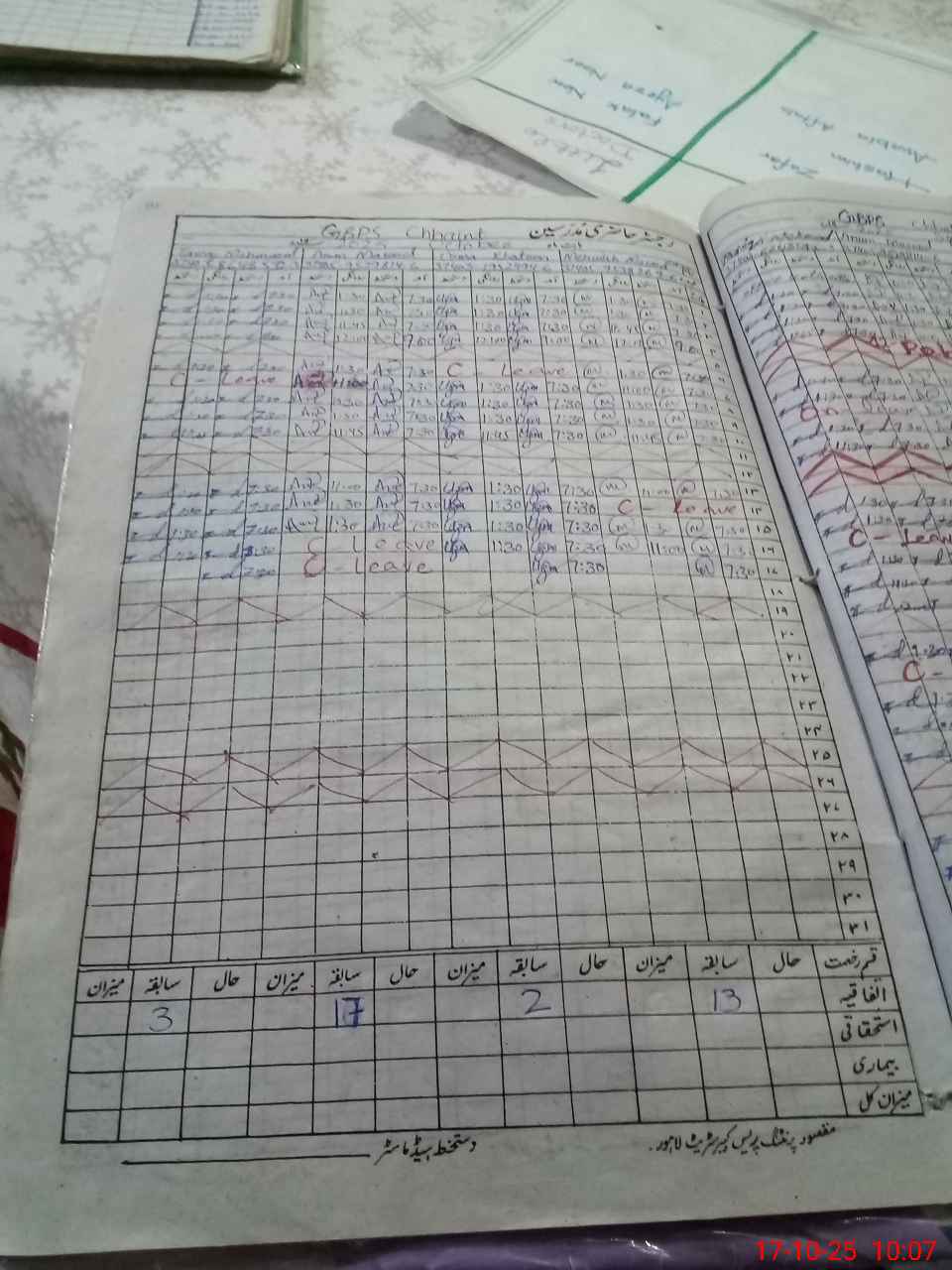 | Leave | Duty | Absent | Maternity | Medical | Ex- Pak |