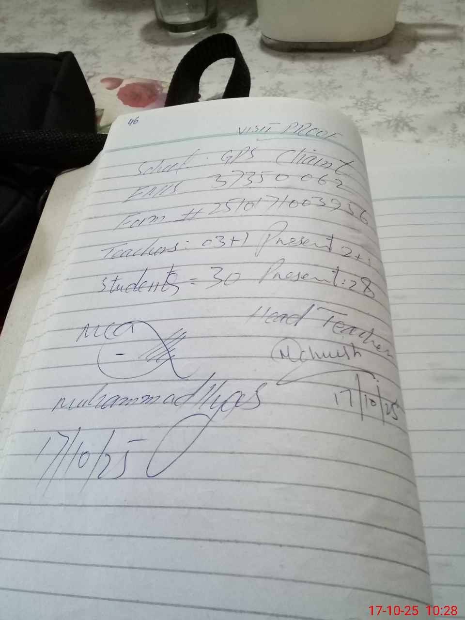 | Attendance Register | Head Teacher | MEA with School | Visit Proof |