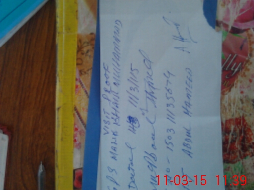 | Monitoring Date: 11-03-2015 | Start Time: 11-03-2015 11:28 AM | End Time: 11-03-2015 11:39 AM | Name of MEA: Ma**** Ah**** -S**** | |