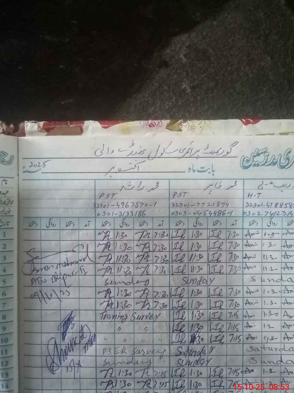 | Name: AU**** AL**** Designation: (School Headmaster's/Headmistress's) PST Phone/Cell Number: 03**** |