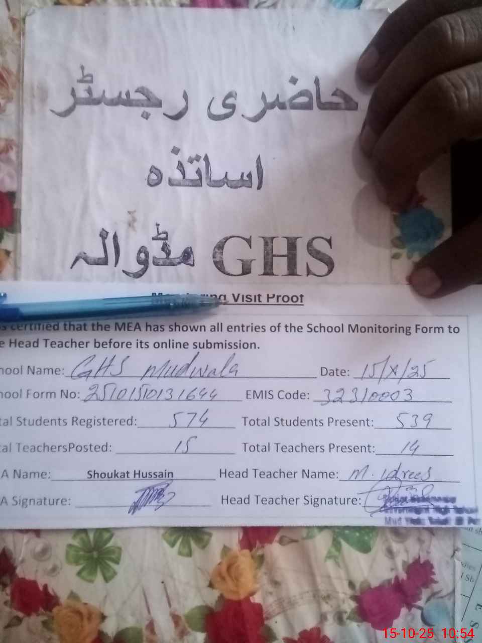 | EMIS Code: 32310003 | Name of School: GHS MUD WALA | |||