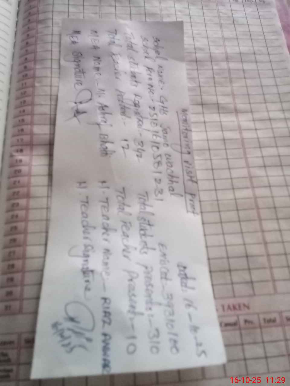 | Attendance Register | Head Teacher | MEA with School | Visit Proof |