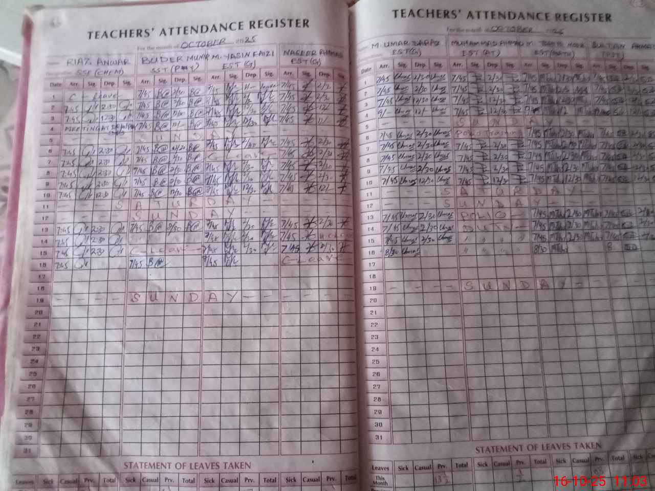 | Leave | Duty | Absent | Maternity | Medical | Ex- Pak |