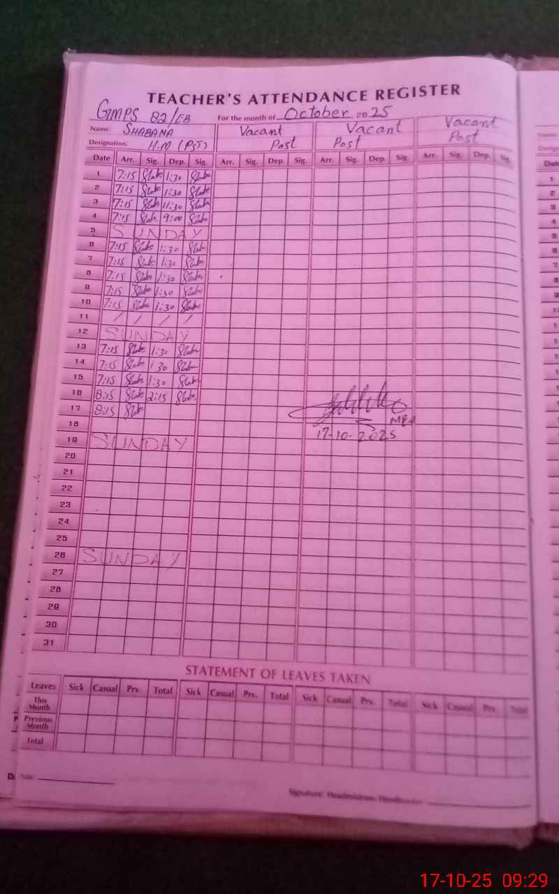 | Name: Sh**** Designation: (School Headmaster's/Headmistress's) PST Phone/Cell Number: 03**** |