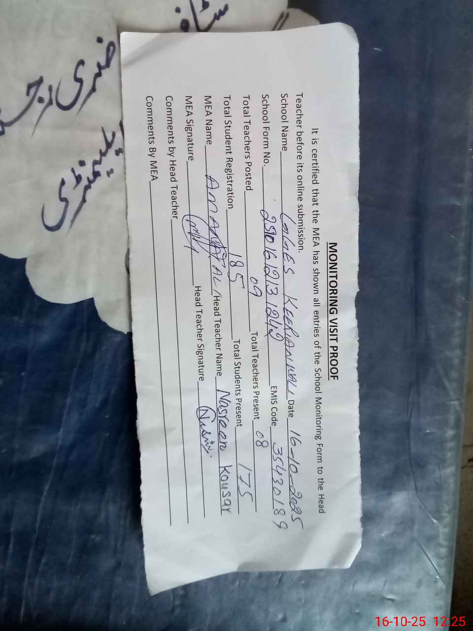 | Certified that this School was Inspected by the Undersigned MEA/DMO Today and the Information Stated Above is as Per Record. | |||||