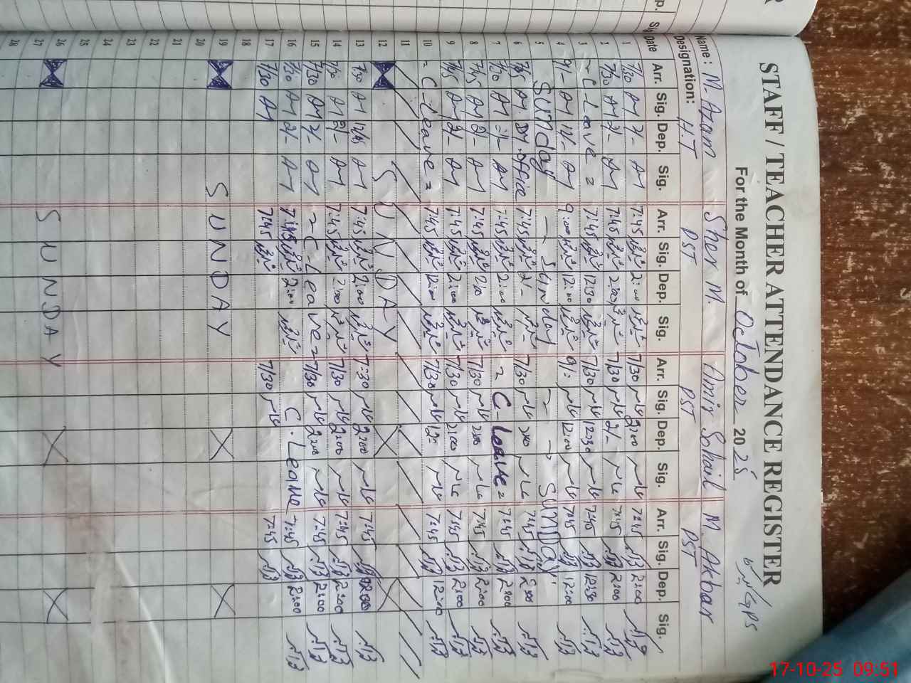 | Remarks (Use Separate Page if Required): NSB and Council Meeting registers not shown Statements of both accounts not available for the month of September 2025 PST Muhammad Ramzan on attendance register shown leave but his leave not shown on SIS so mark him absent LITNUM and followed by class 3 35210354 | |||||