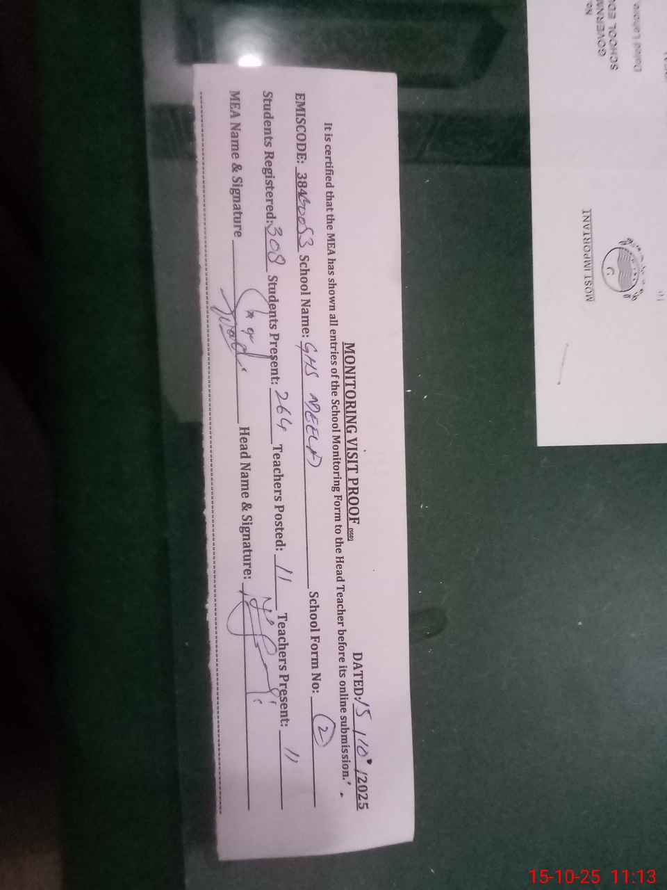 | EMIS Code: 38460053 | Name of School: GHS MEELA | |||