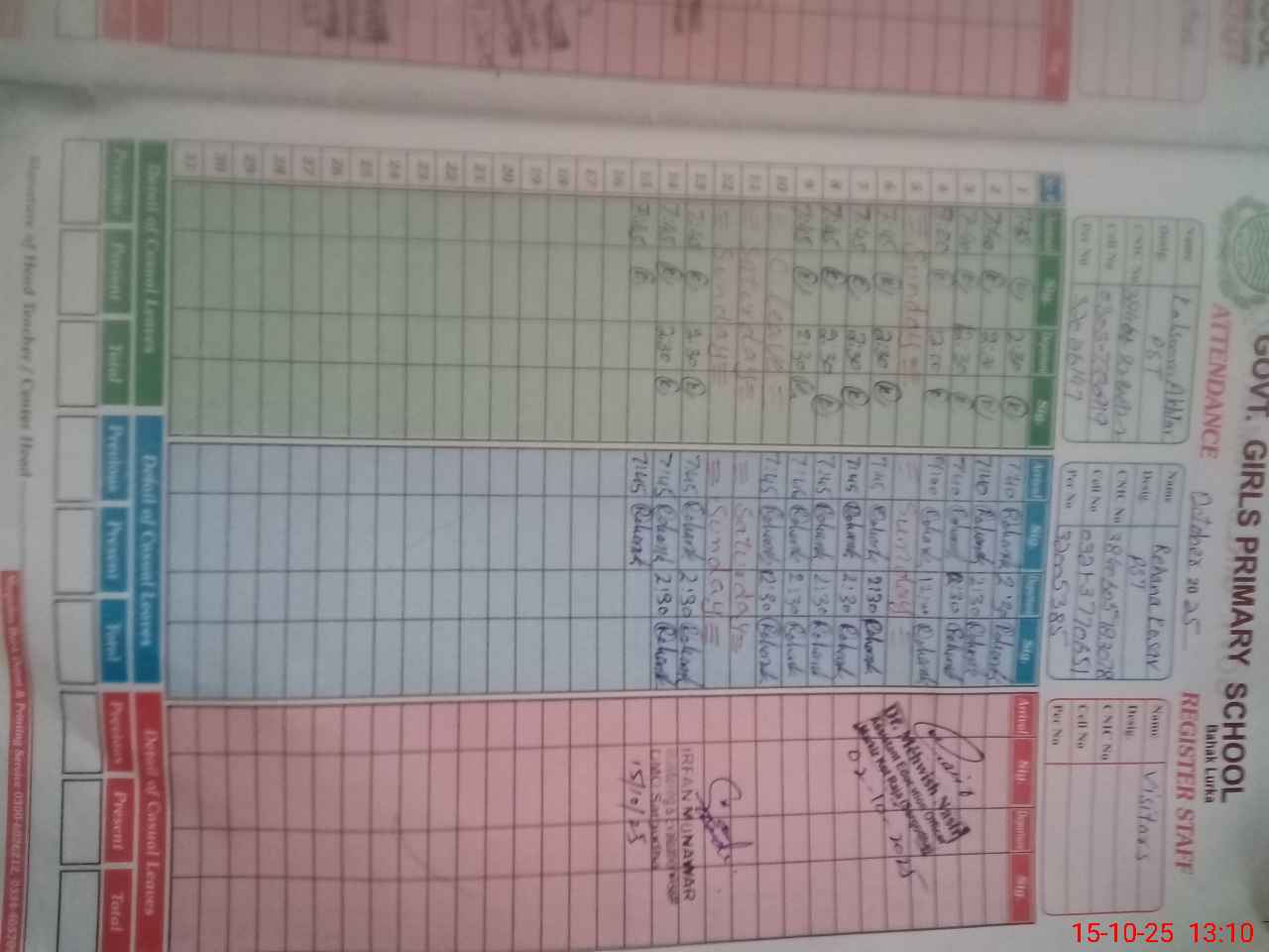 | Name: KA**** AK**** Designation: (School Headmaster's/Headmistress's) PST Phone/Cell Number: 03**** |