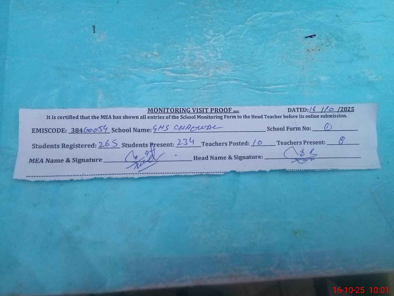 | EMIS Code: 38460054 | Name of School: GHS CHAUWAL | |||
