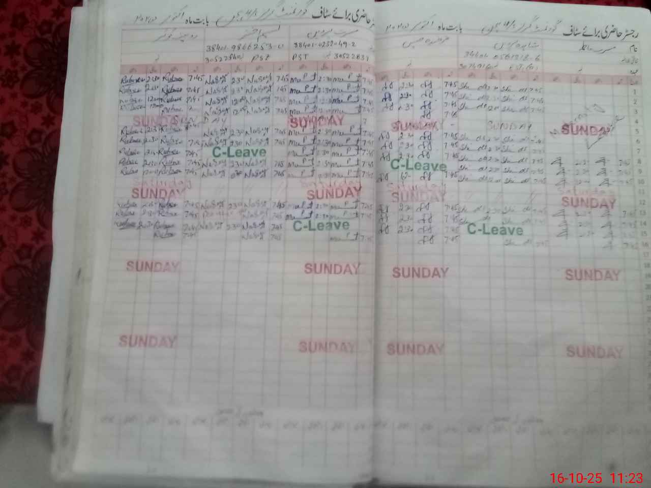 | CNIC | Full Name | Designation | R/C | Absence During Last Calender Month |
