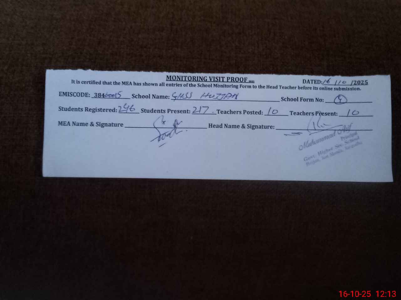 | EMIS Code: 38460015 | Name of School: GHSS HUJJAN | |||