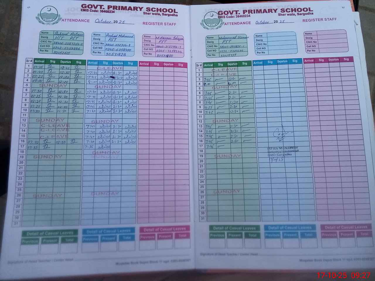 | Name: Sh**** As**** Designation: (School Headmaster's/Headmistress's) PST Phone/Cell Number: 03**** |