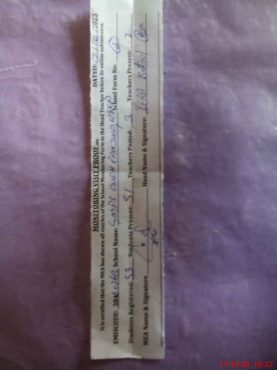 | Certified that this School was Inspected by the Undersigned MEA/DMO Today and the Information Stated Above is as Per Record. | |||||