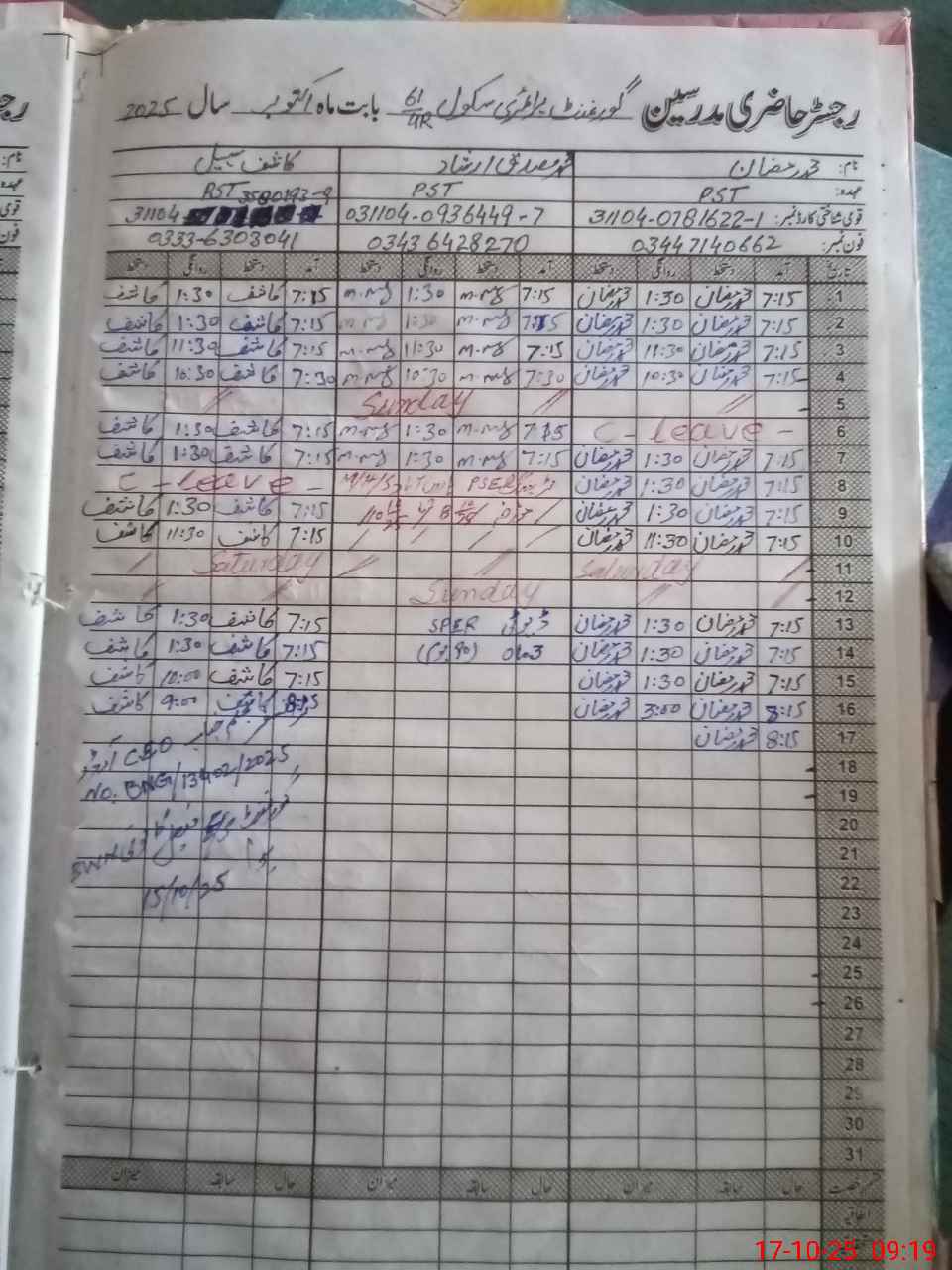 | Name: MU**** RA**** Designation: (School Headmaster's/Headmistress's) PST Phone/Cell Number: 03**** |