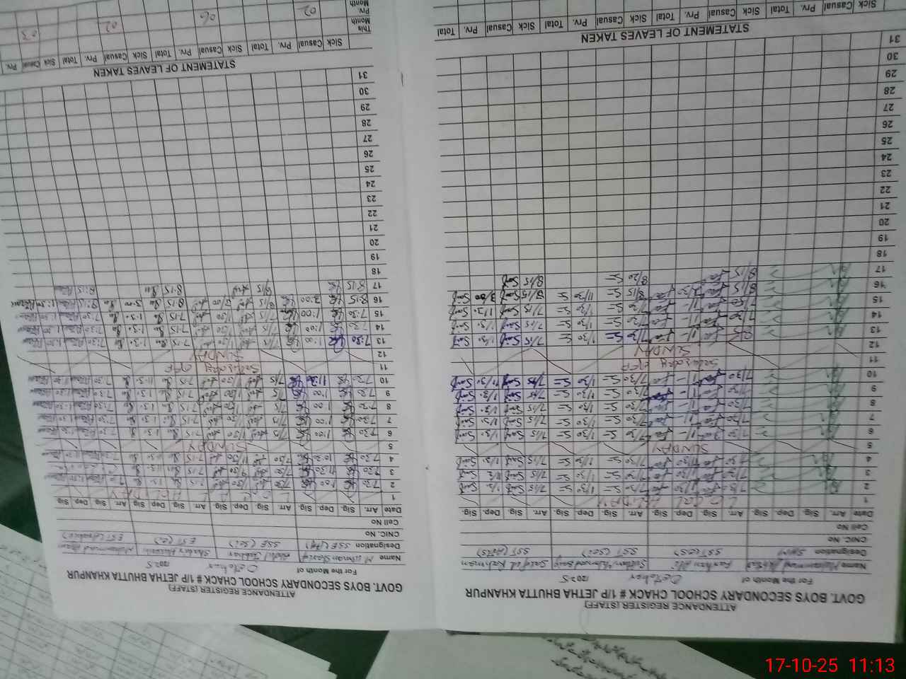 | CNIC | Full Name | Designation | R/C | Absence During Last Calender Month |