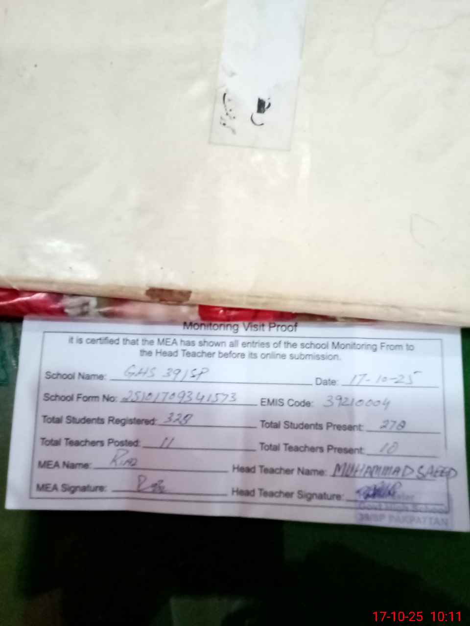 | EMIS Code: 39210004 | Name of School: GHS 39/S.P | |||