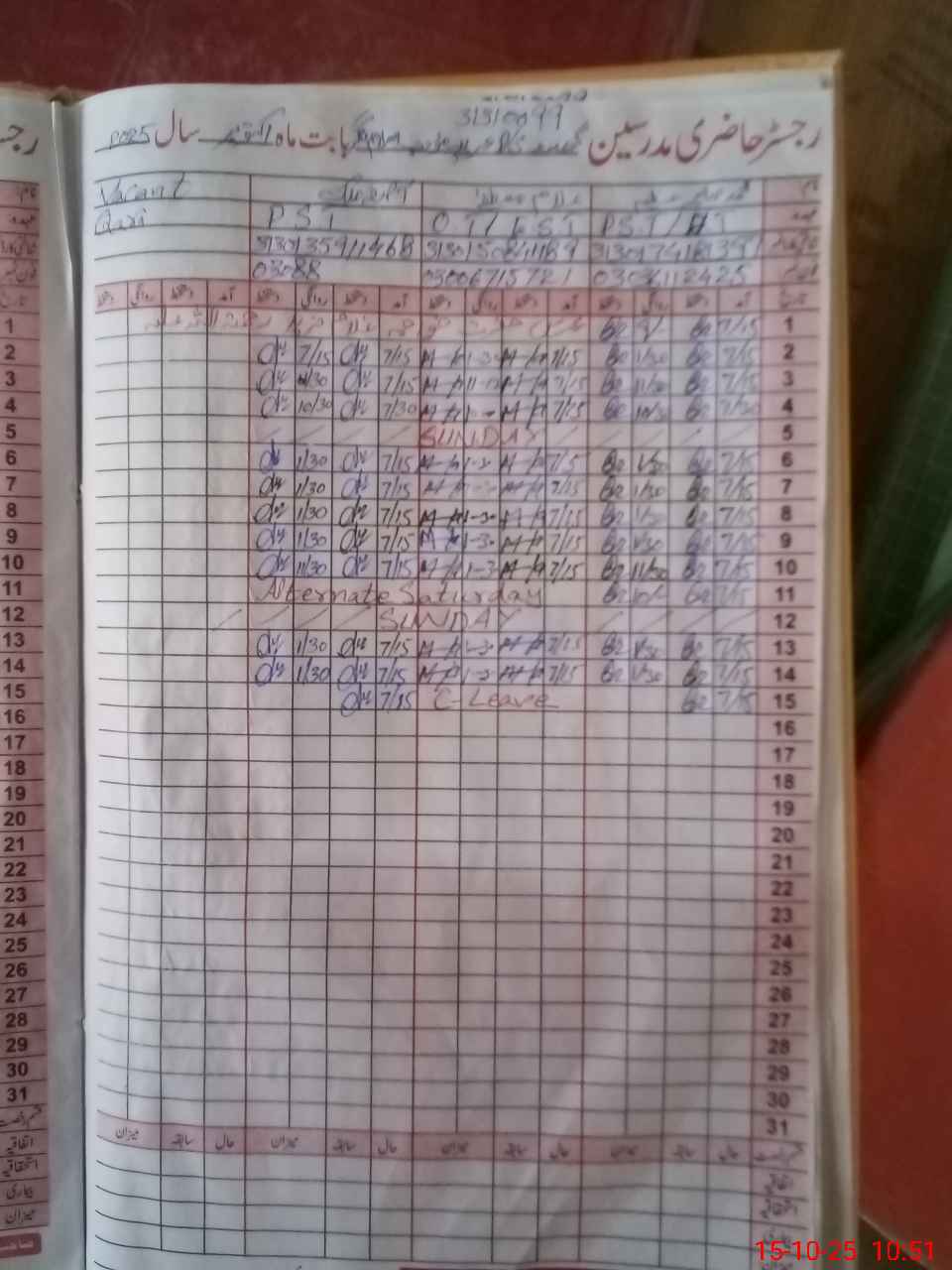 | Name: MSa**** Az**** Designation: (School Headmaster's/Headmistress's) PST Phone/Cell Number: 03**** |