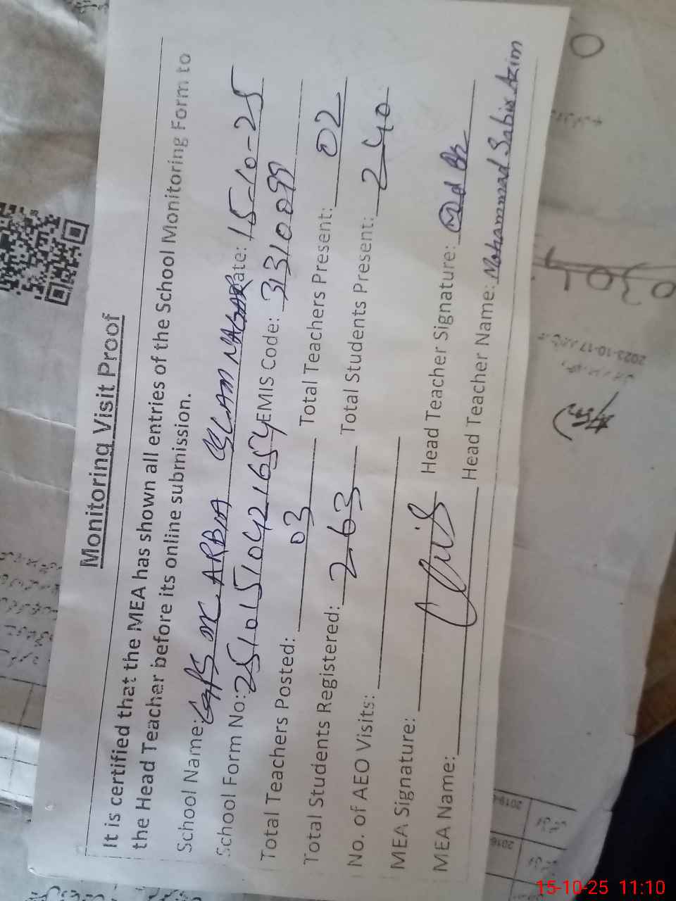 | EMIS Code: 31310099 | Name of School: GPS MC ARBIA MODDIB MOHALLA ISLAM NAGAR | |||