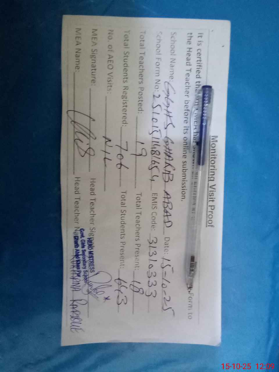 | Certified that this School was Inspected by the Undersigned MEA/DMO Today and the Information Stated Above is as Per Record. | |||||