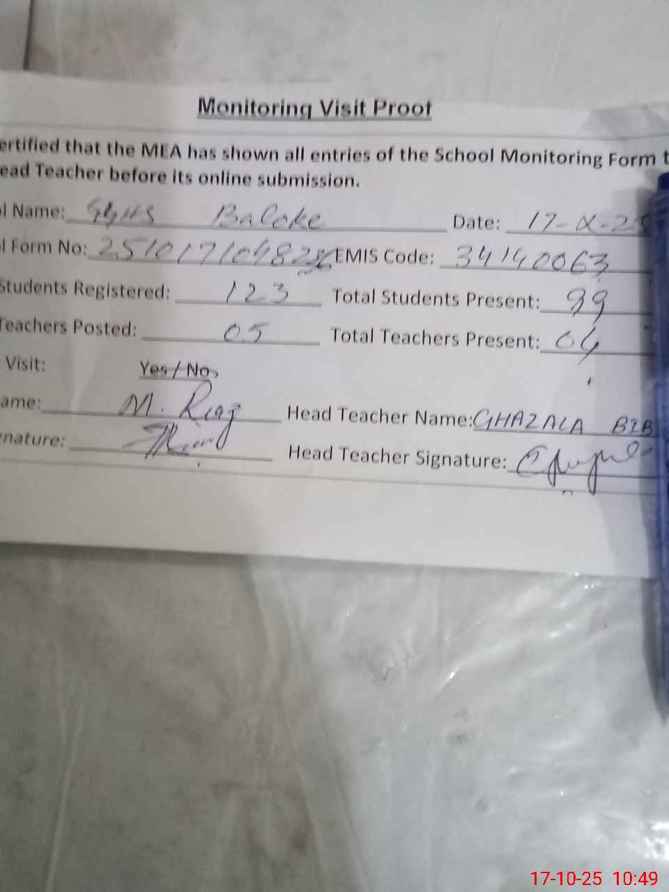 | EMIS Code: 34140063 | Name of School: GGHS BALOKE VIRKAN | |||