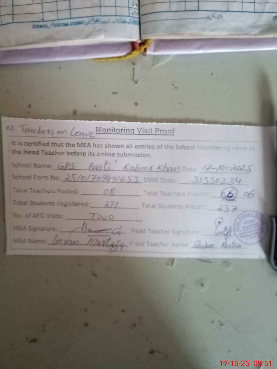 | EMIS Code: 31330234 | Name of School: GPS BASTI KAHOOR KHAN | |||