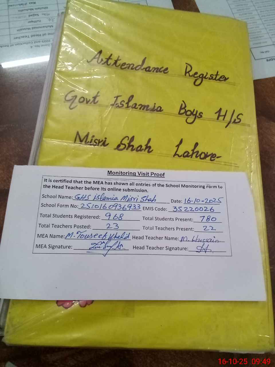 | EMIS Code: 35220026 | Name of School: GHS ISLAMIA MISRI SHAH | |||