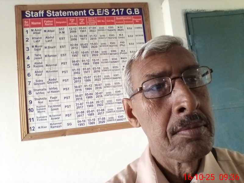 | Name: MU**** AA**** AF**** Designation: (School Headmaster's/Headmistress's) SST (GENERAL) Phone/Cell Number: 03**** |