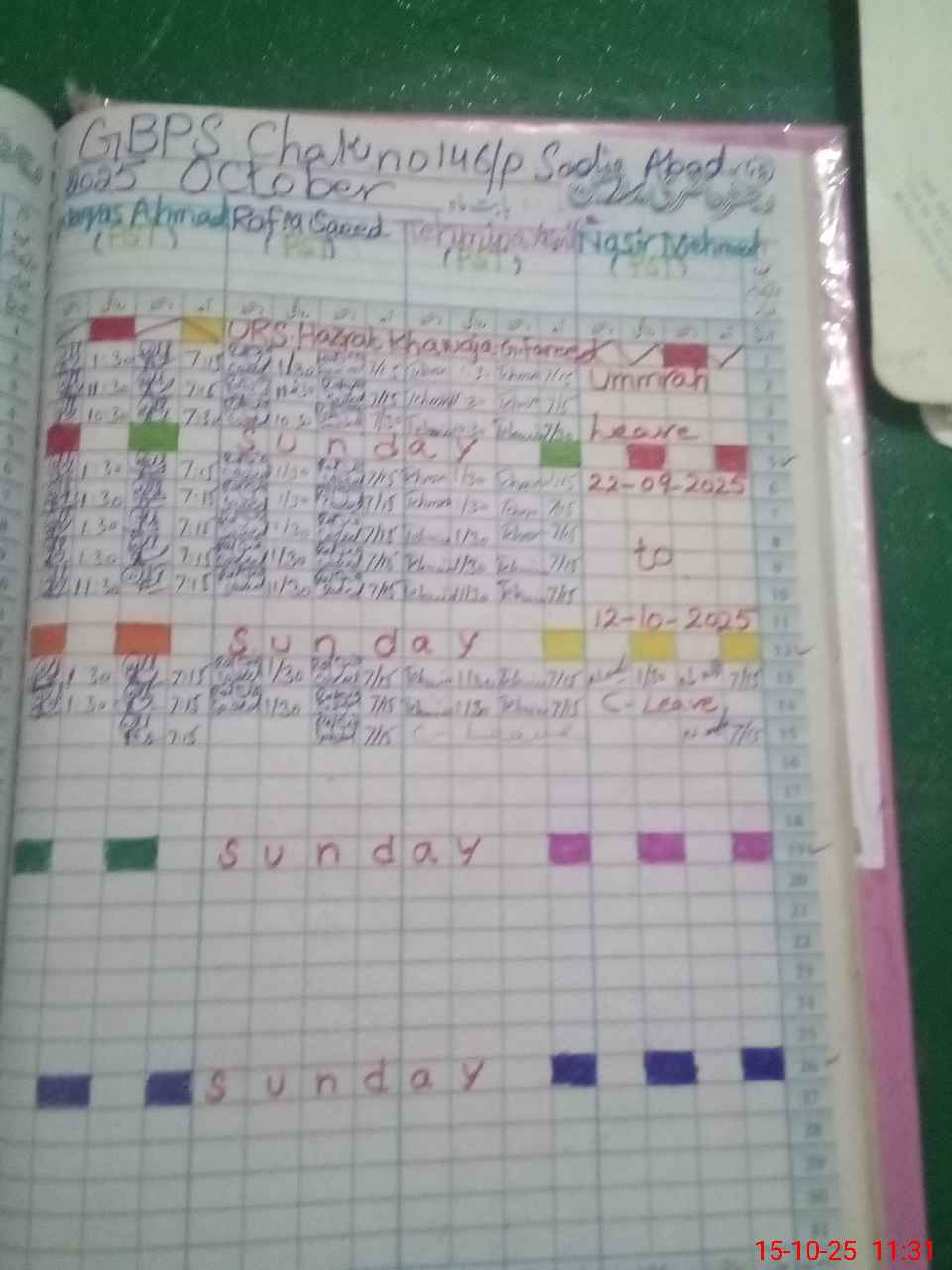 | Leave | Duty | Absent | Maternity | Medical | Ex- Pak |
