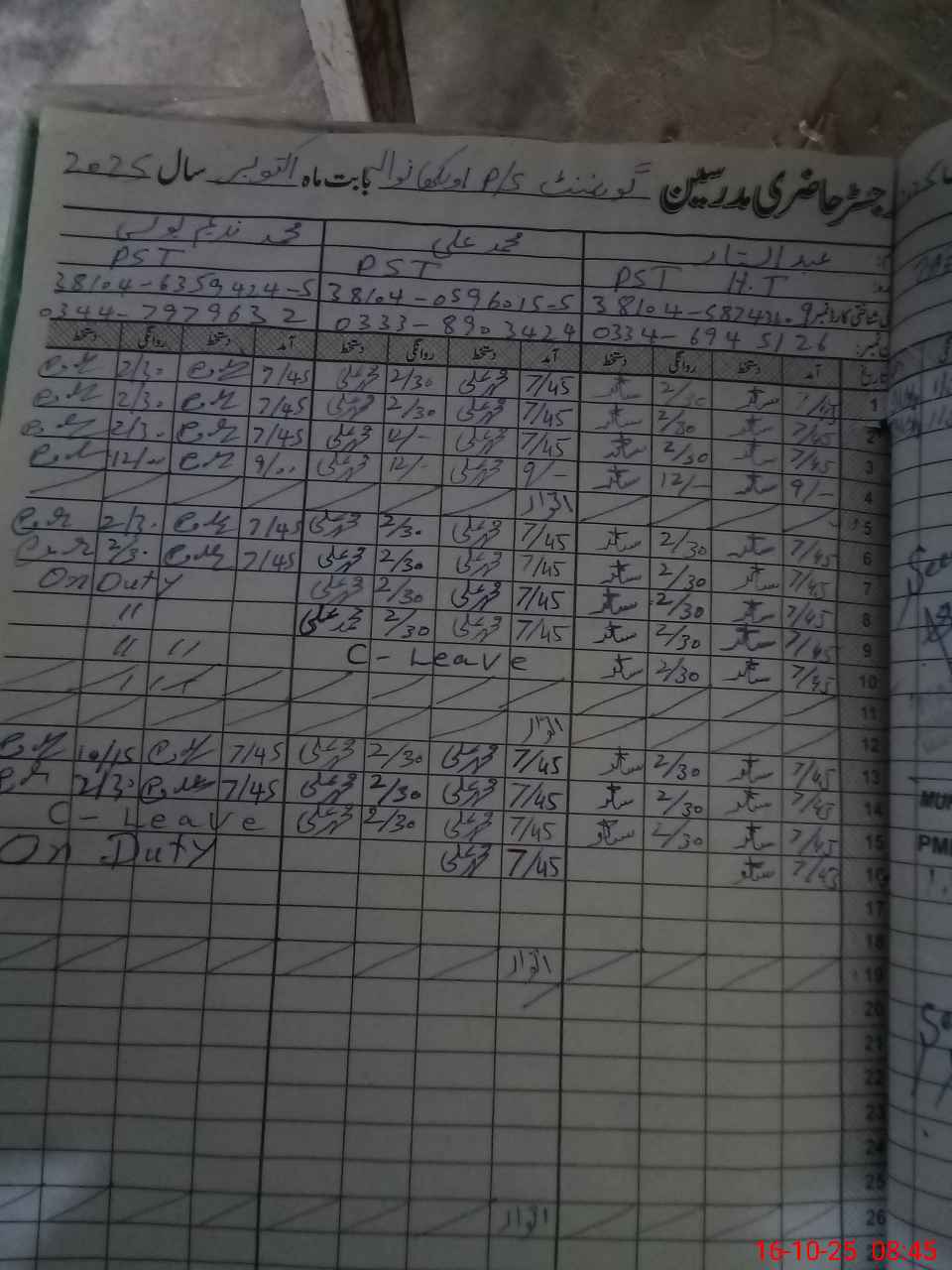 | Name: Mu**** Pe**** Designation: (School Headmaster's/Headmistress's) PST Phone/Cell Number: 03**** |