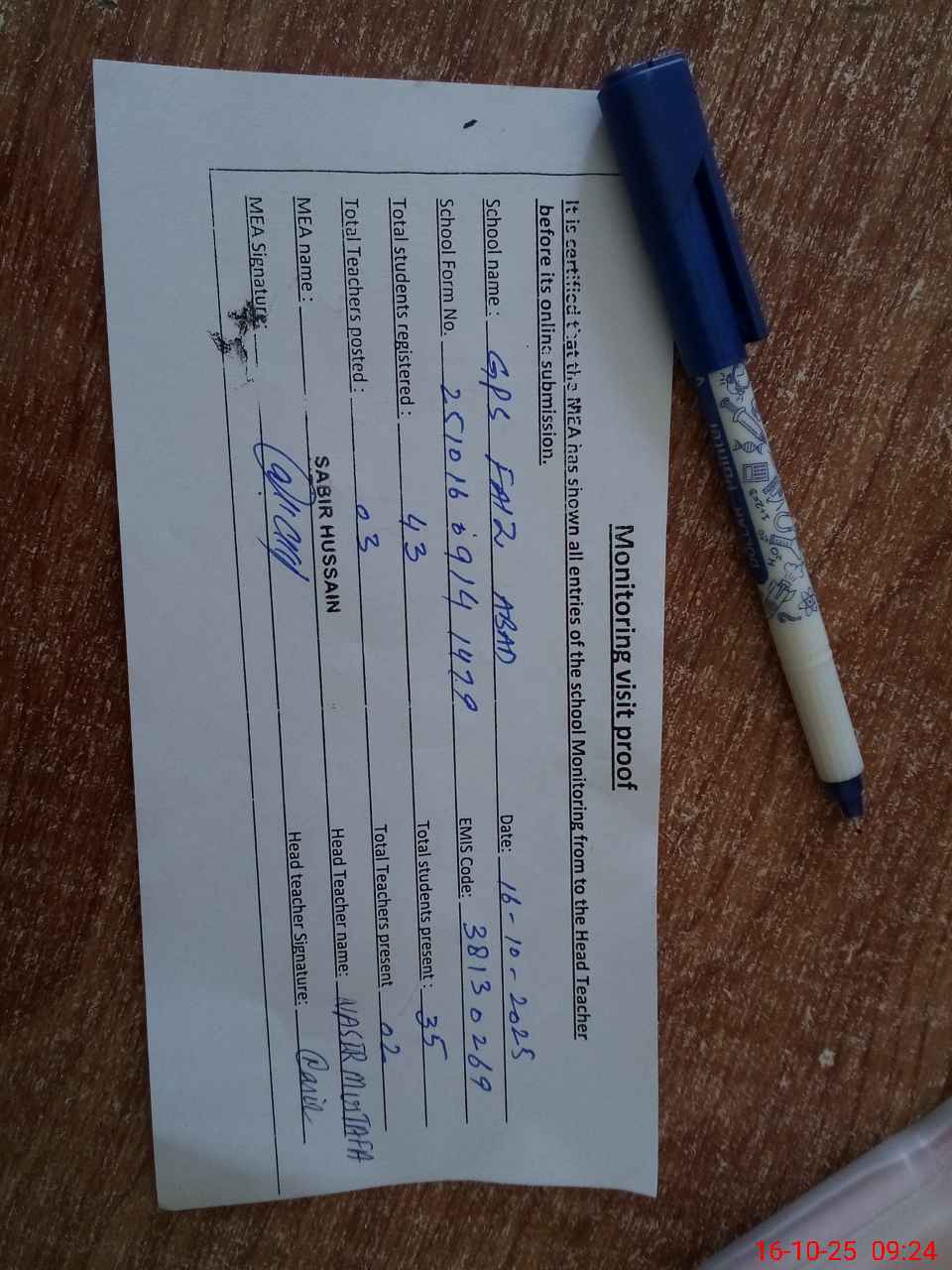 | EMIS Code: 38130269 | Name of School: GPS FAIZ ABAD | |||