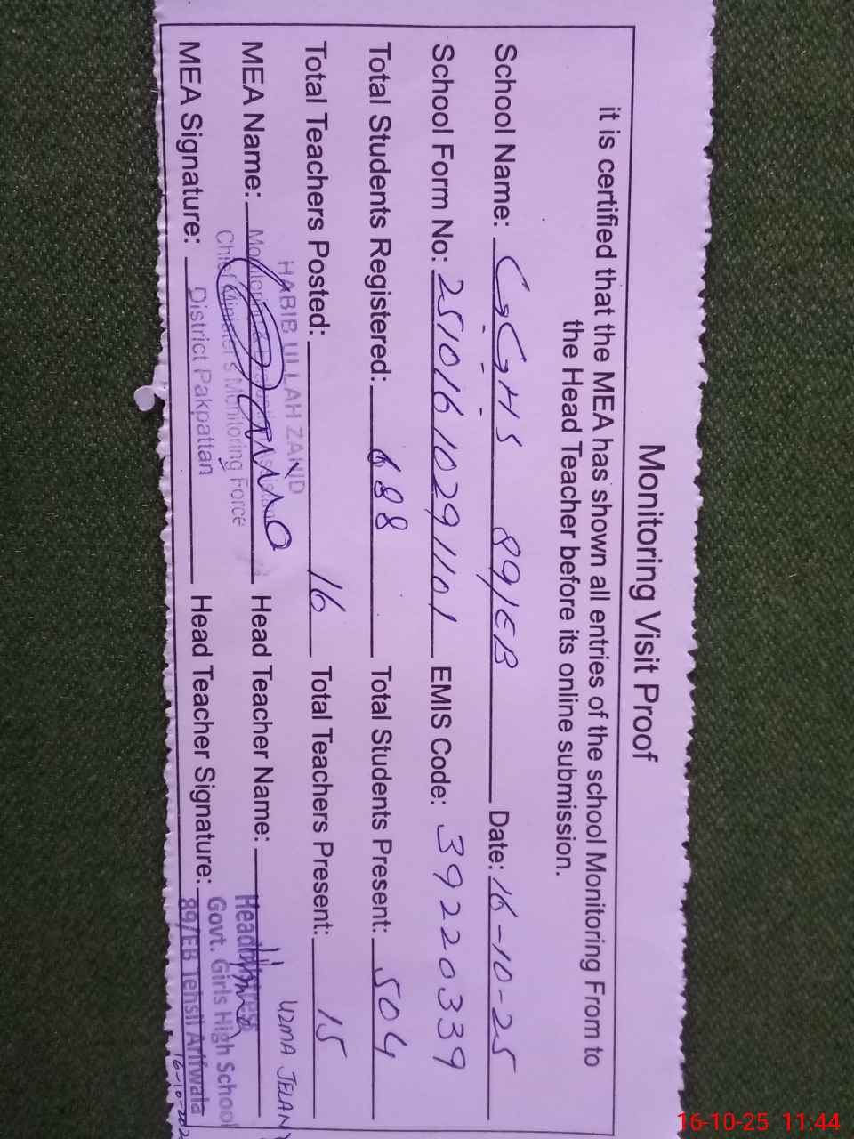| EMIS Code: 39220339 | Name of School: GGHS 89/EB | |||