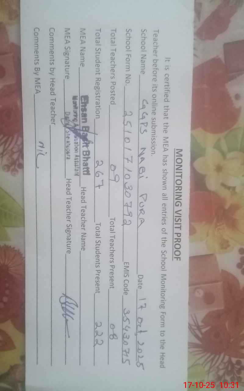 | EMIS Code: 35430715 | Name of School: GGPS NABI PURA | |||