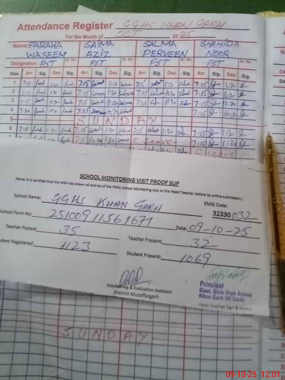 | EMIS Code: 32330032 | Name of School: GGHS KHAN GARH | |||
