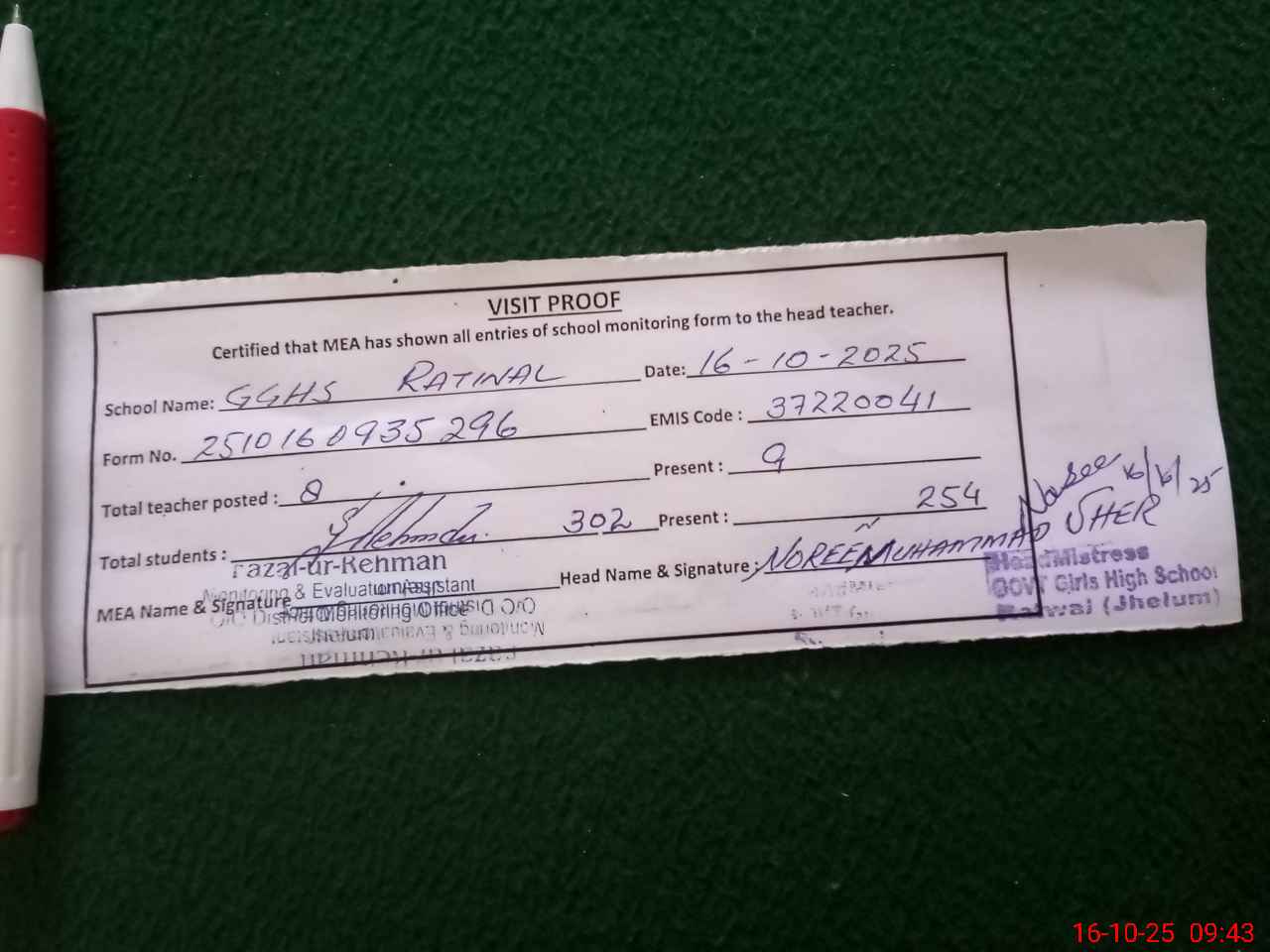 | EMIS Code: 37220041 | Name of School: GGHS RATWAL | |||