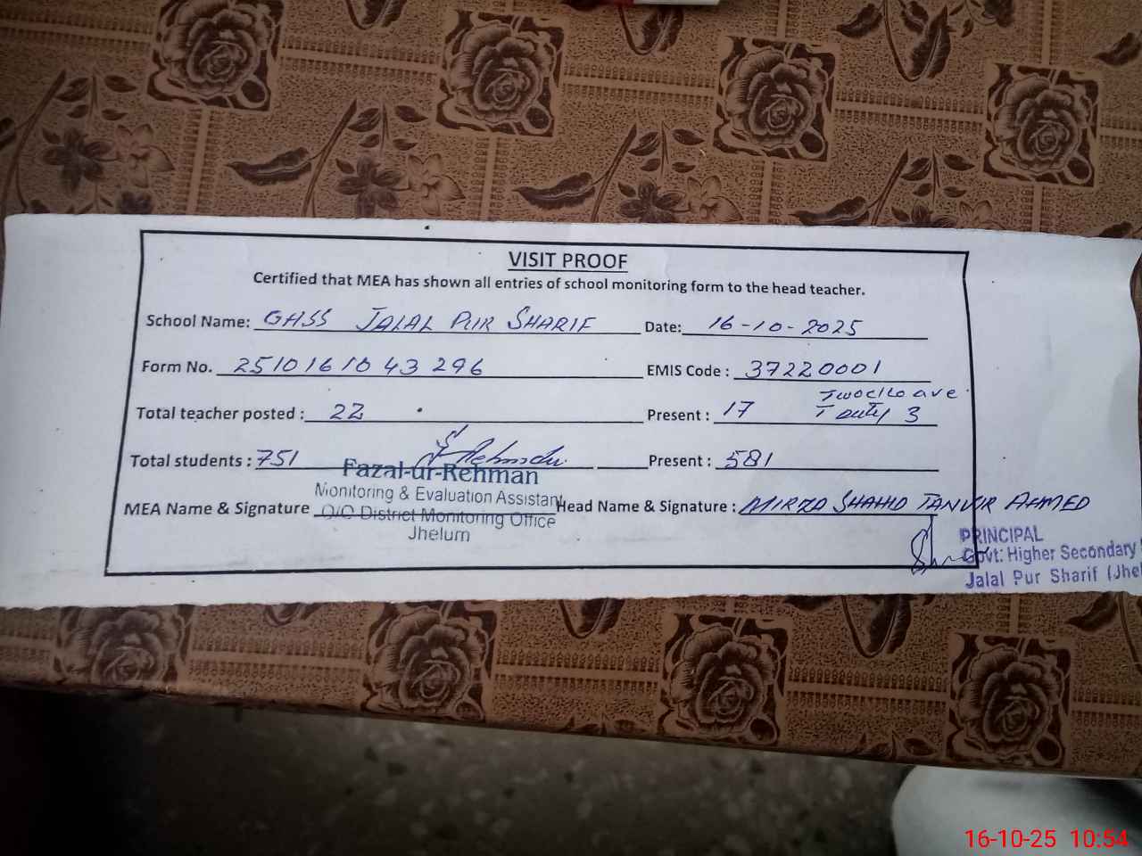 | EMIS Code: 37220001 | Name of School: GHSS JALAL PUR SHARIF | |||