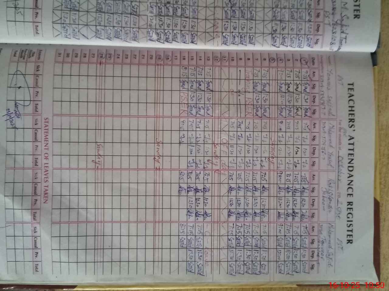| Name: SA**** HU**** Designation: (School Headmaster's/Headmistress's) PST Phone/Cell Number: 03**** |