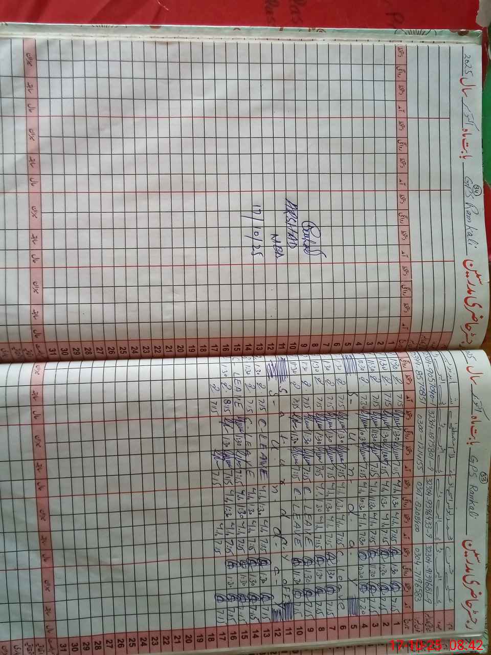 | CNIC | Full Name | Designation | R/C | Absence during last cal. month |