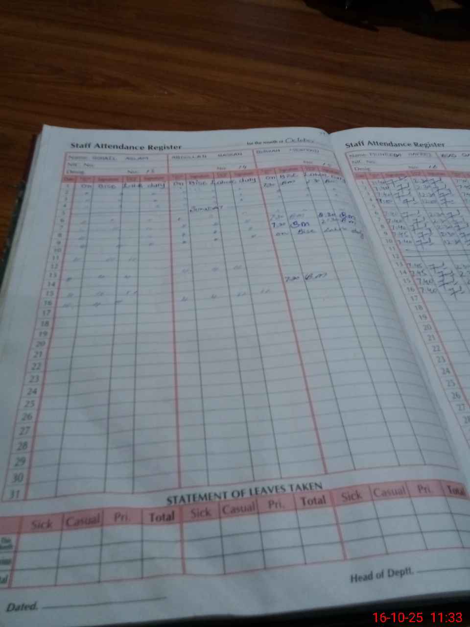 | 35**** | Al**** Sa**** | SST | Regular | 0 | 0 | 0 | 0 | 0 | 0 | 0 | 0 | 0 | Exam Duty |