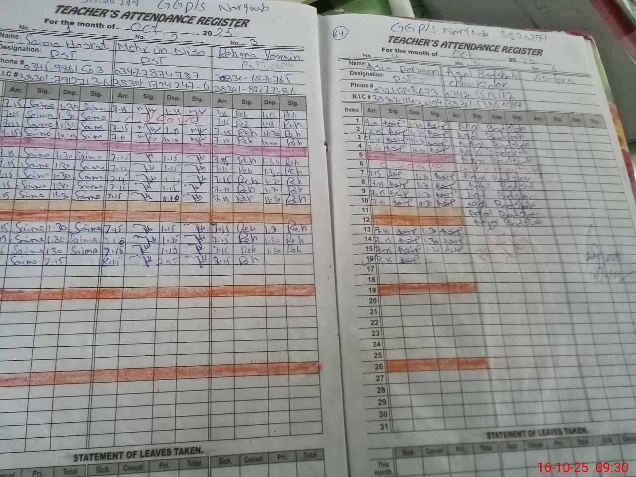 | CNIC | Full Name | Designation | R/C | Absence During Last Calender Month |
