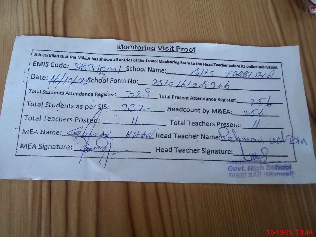 | Certified that this School was Inspected by the Undersigned MEA/DMO Today and the Information Stated Above is as Per Record. | |||||