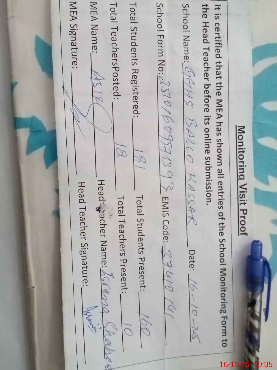 | Certified that this School was Inspected by the Undersigned MEA/DMO Today and the Information Stated Above is as Per Record. | |||||