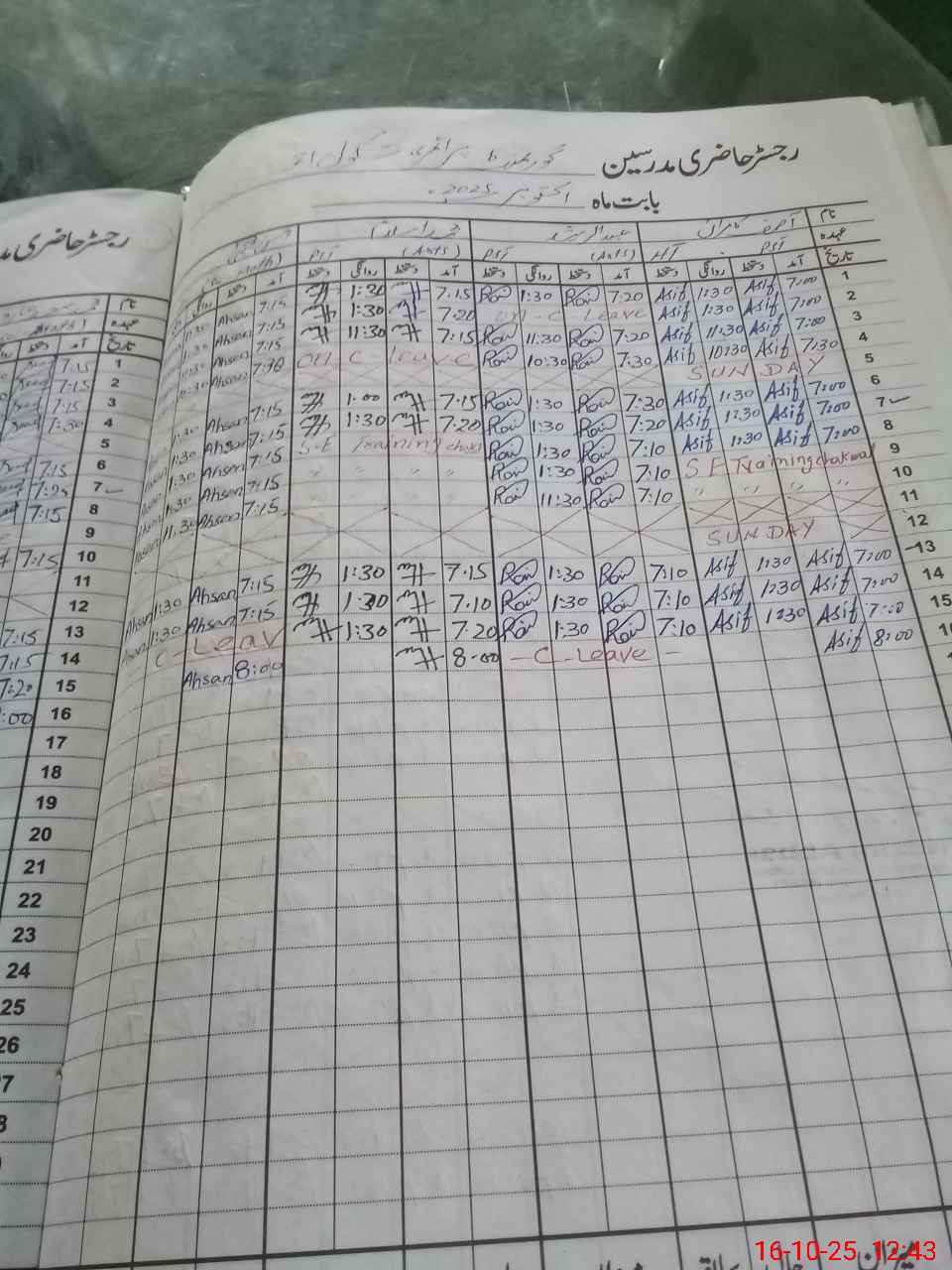 | 32**** | Mu**** Sh**** Sh**** | PST | Regular | 0 | 0 | 0 | 0 | 0 | 0 | 0 | 0 | 0 | Exam Duty |