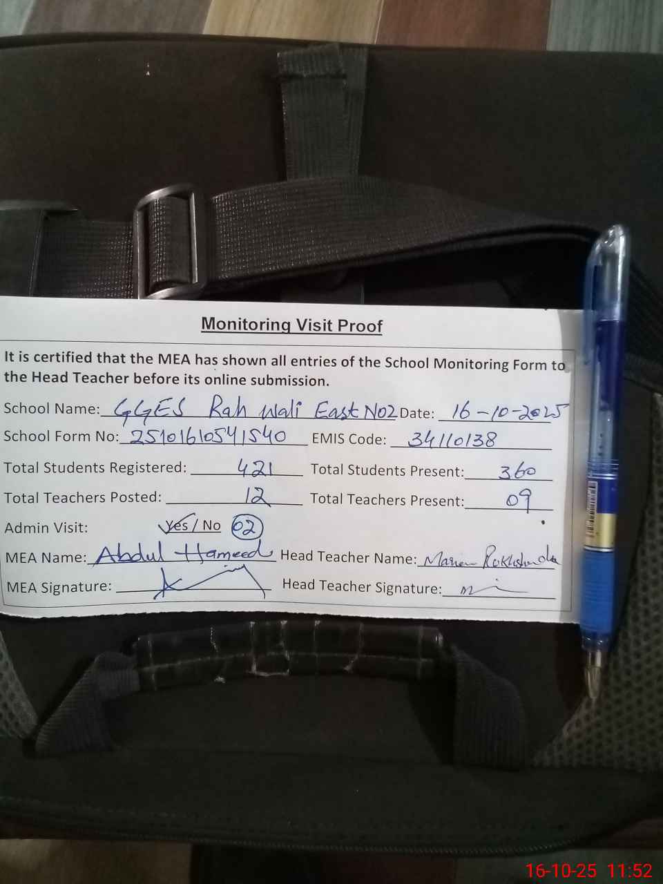 | EMIS Code: 34110138 | Name of School: GGES RAH WALI EAST NO.2 | |||