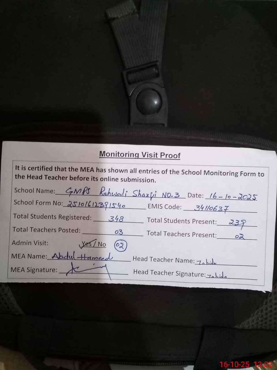 | EMIS Code: 34110637 | Name of School: GMPS RAHWALI SHARQI NO.3 | |||