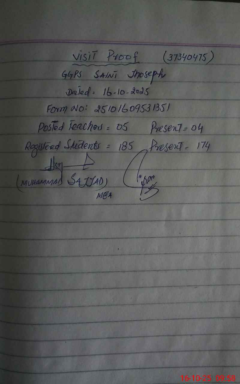 | EMIS Code: 37340475 | Name of School: GGPS SAINT JOSEPH WAH CANTT | |||