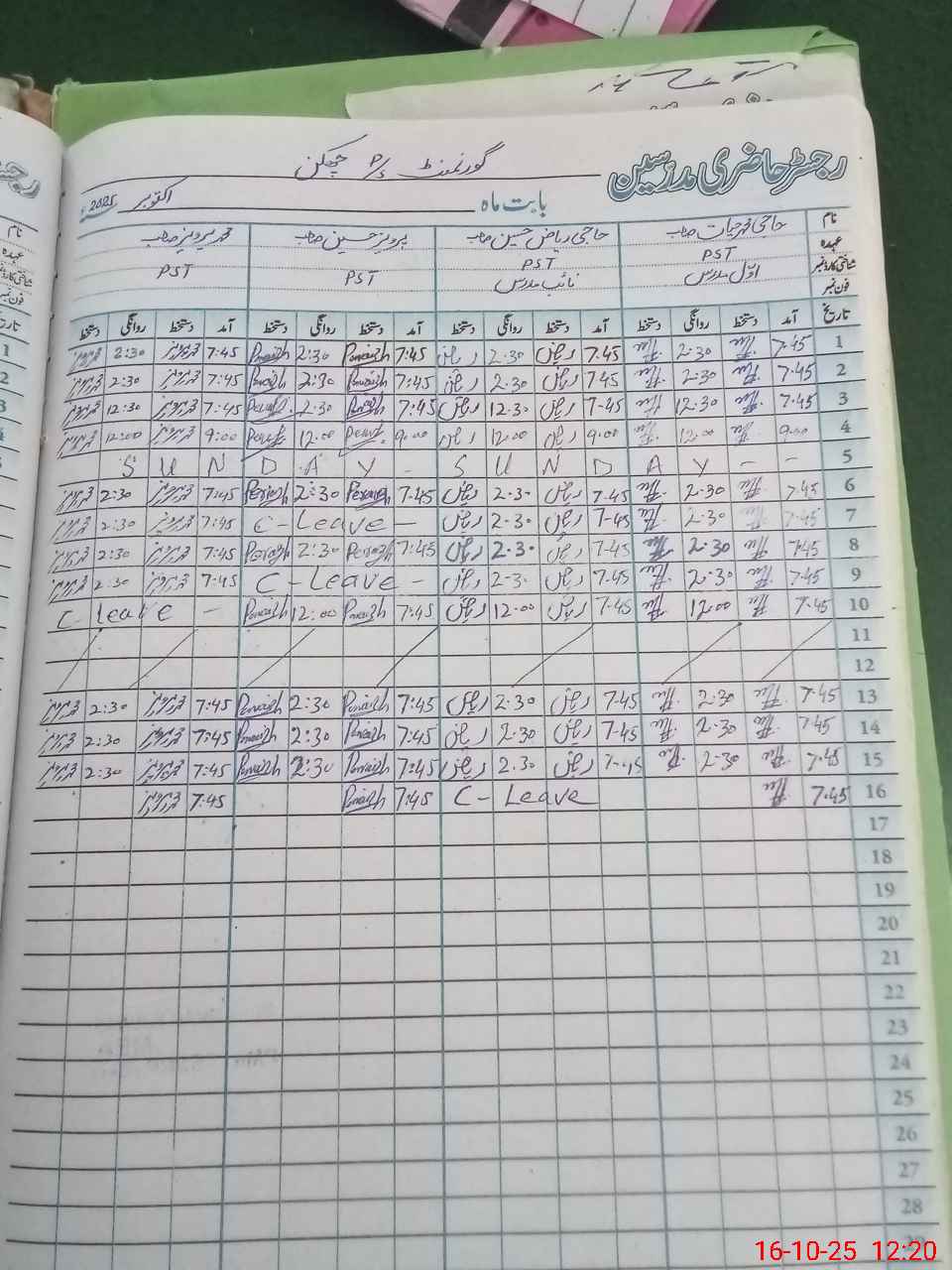 | CNIC | Full Name | Designation | R/C | Absence During Last Calender Month |