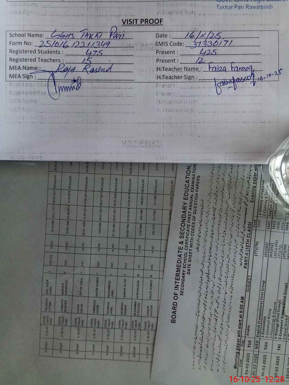 | EMIS Code: 37330171 | Name of School: GGHS TAKHAT PARI | |||