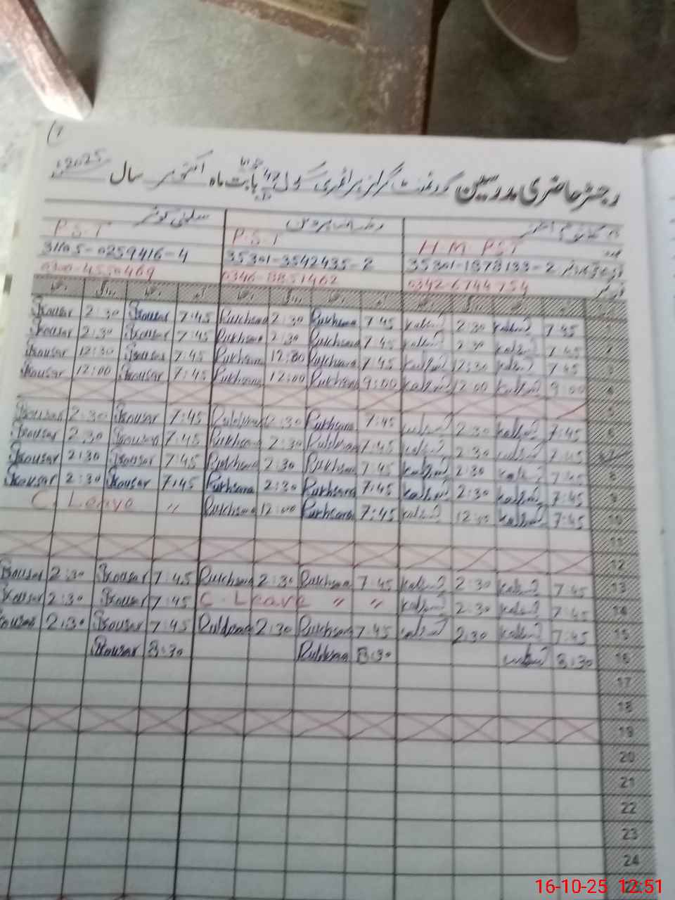 | Name: KA**** AK**** Designation: (School Headmaster's/Headmistress's) PST Phone/Cell Number: 03**** |