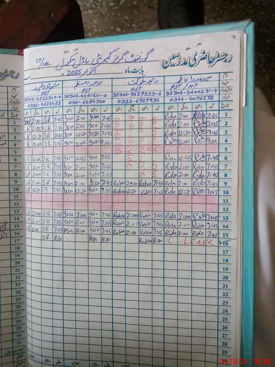 | Name: Sy**** Ri**** Fa**** Designation: (School Headmaster's/Headmistress's) Pst Phone/Cell Number: 03**** |