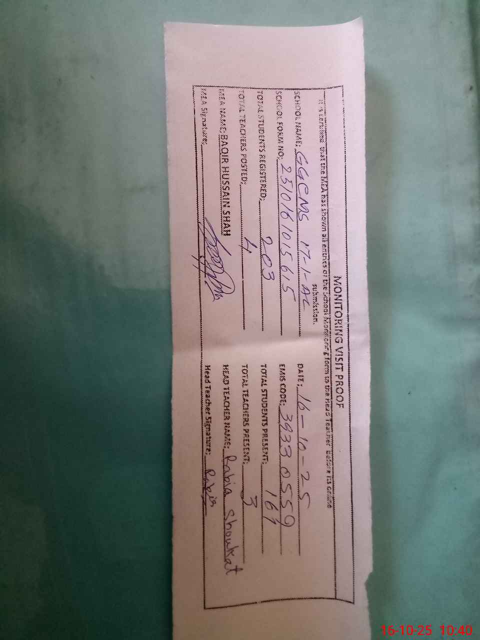 | Certified that this School was Inspected by the Undersigned MEA/DMO Today and the Information Stated Above is as Per Record. | |||||